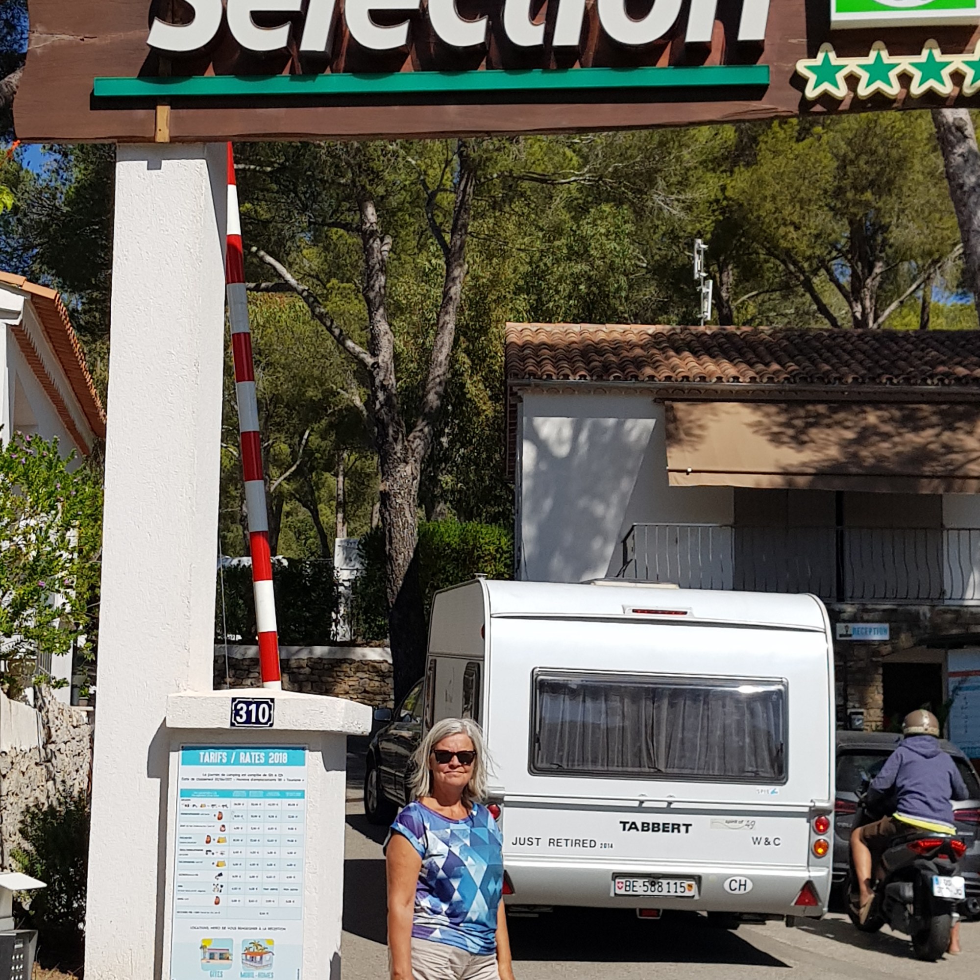 Vi hittade den här campingen genom vårt medlemskap i ACSI. Att vara medlem innebär att man får bra rabatter på för- och eftersäsong. Alla campingar som är anslutna besiktigas årligen och får betyg mellan 1 och 10. Betygssättningen handlar om läge, service, sanitära anläggningar, faciliteter mm.