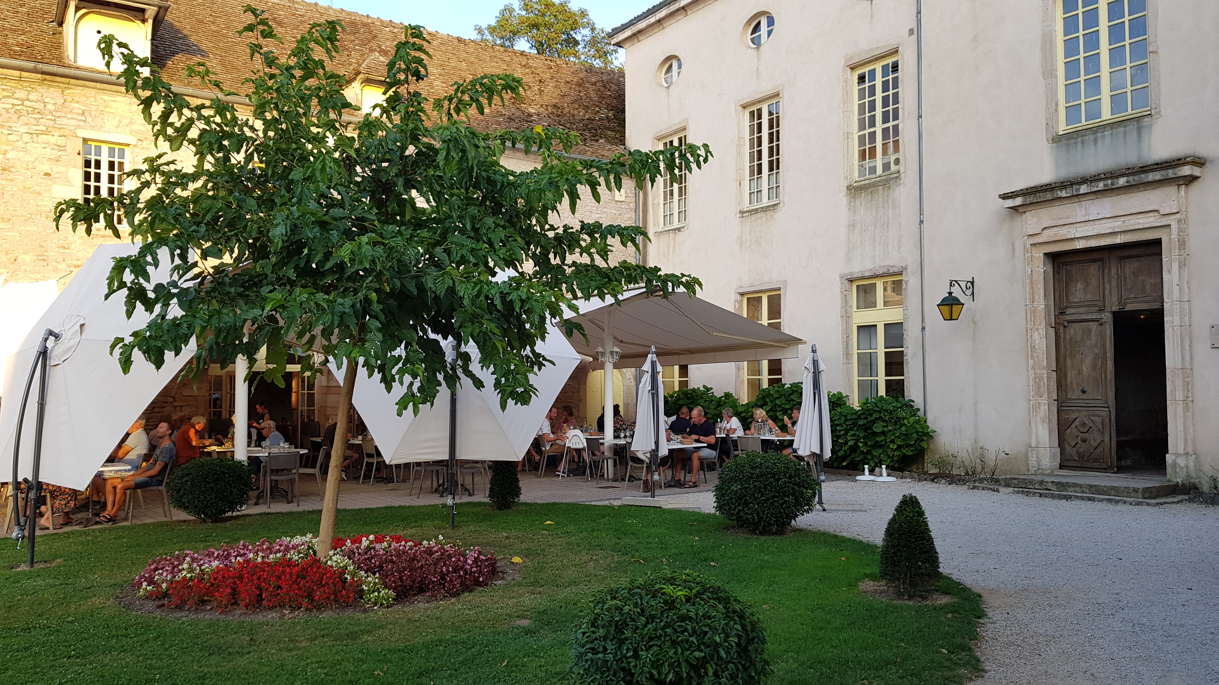 Kör mot slottscampingen Chateau de L’Epervière, ett helt fantastiskt ställe med en campingplats i en slottspark. Mycket större än vi trodde, säkert ett 80-tal platser. Får en jättefin plats vid Saône och tänker direkt att här vill vi stanna i två nätter och bokar ytterligare en natt. När vi varit där en stund dyker det upp små djur från floden – brasilianska råttor. De ser ut som små bävrar med råttsvans och går omkring på gräset och äter och jag stålsätter mig för att över huvud taget vara kvar ute. Eftersom jag inte är så förtjust i djur och är rädd för nästa alla, förtar detta den fina upplevelsen.