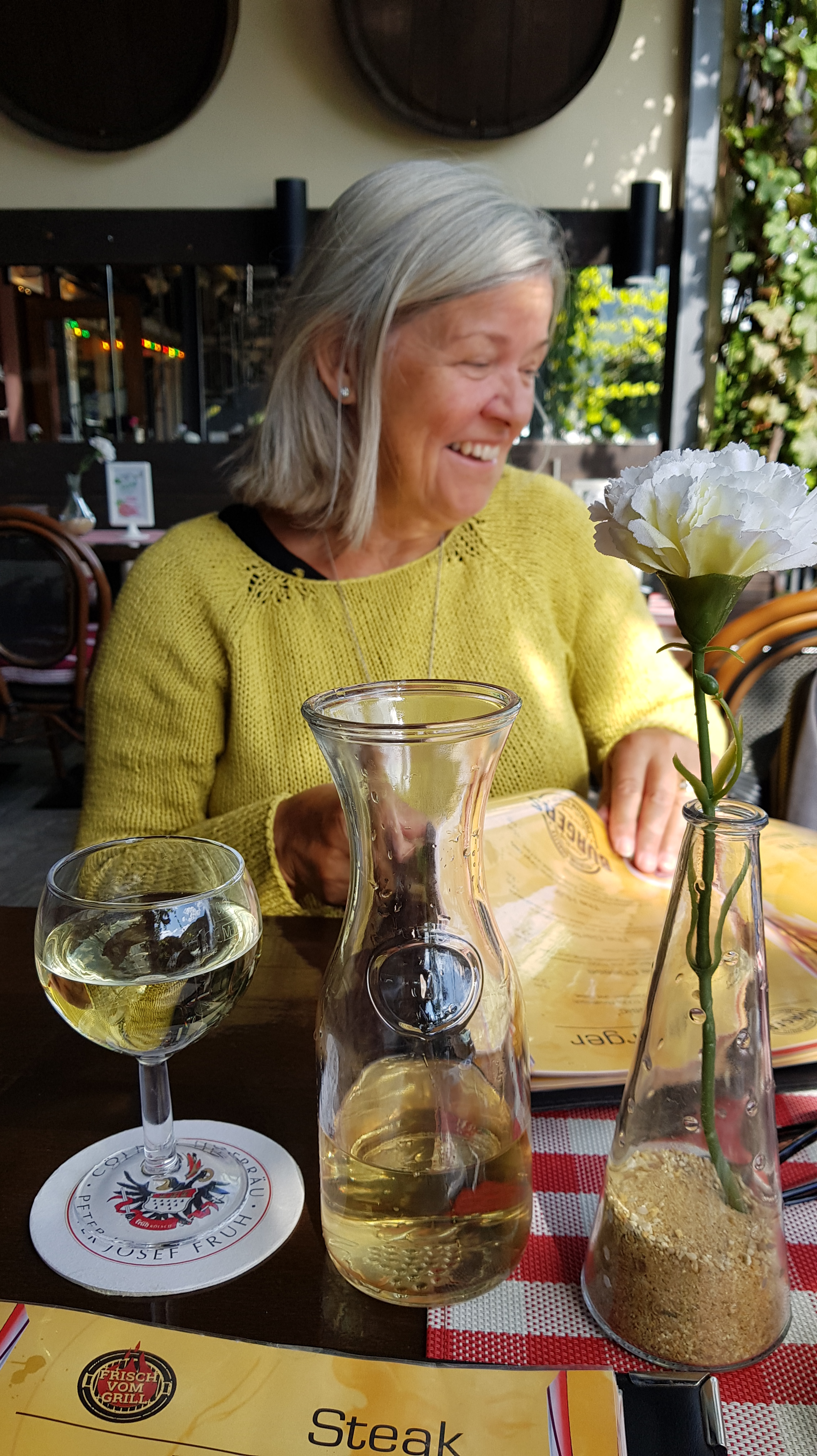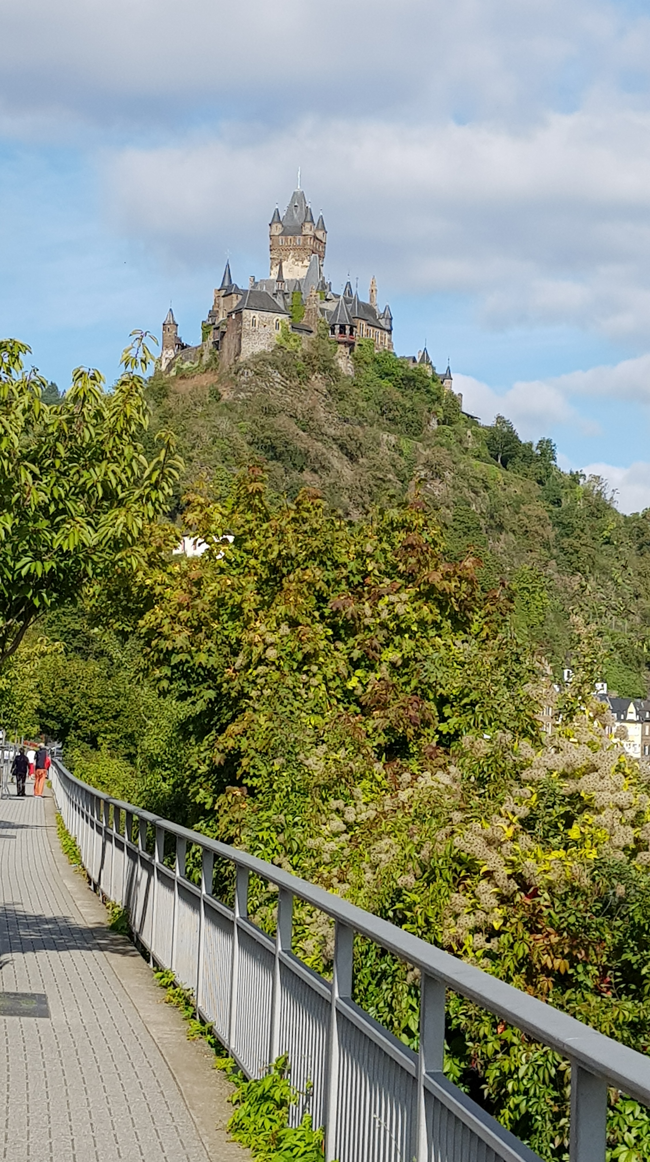 Efter frukost tar vi en jättefin cykeltur längs Mosel till Cochem, ca 1 mil. Soligt, fint väder. Strosar i den gamla staden som har anor från 1100-talet. Korsvirkeshus, gamla torg, stadsportar och framförallt Cochems riksborg med alla sina tinnar och torn.