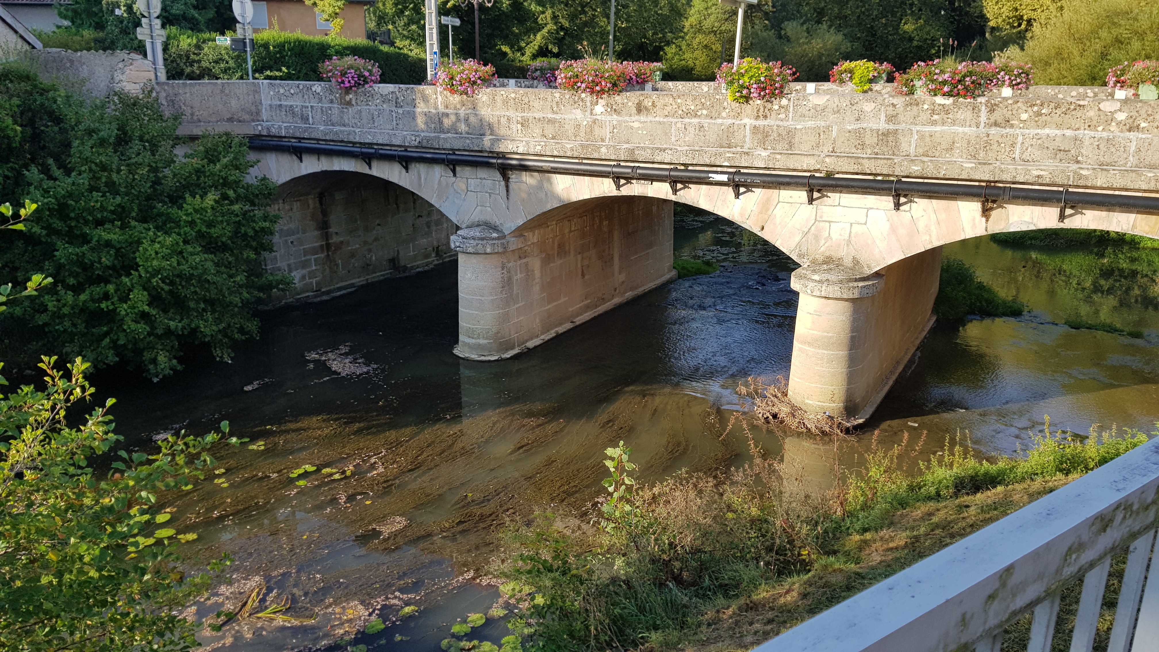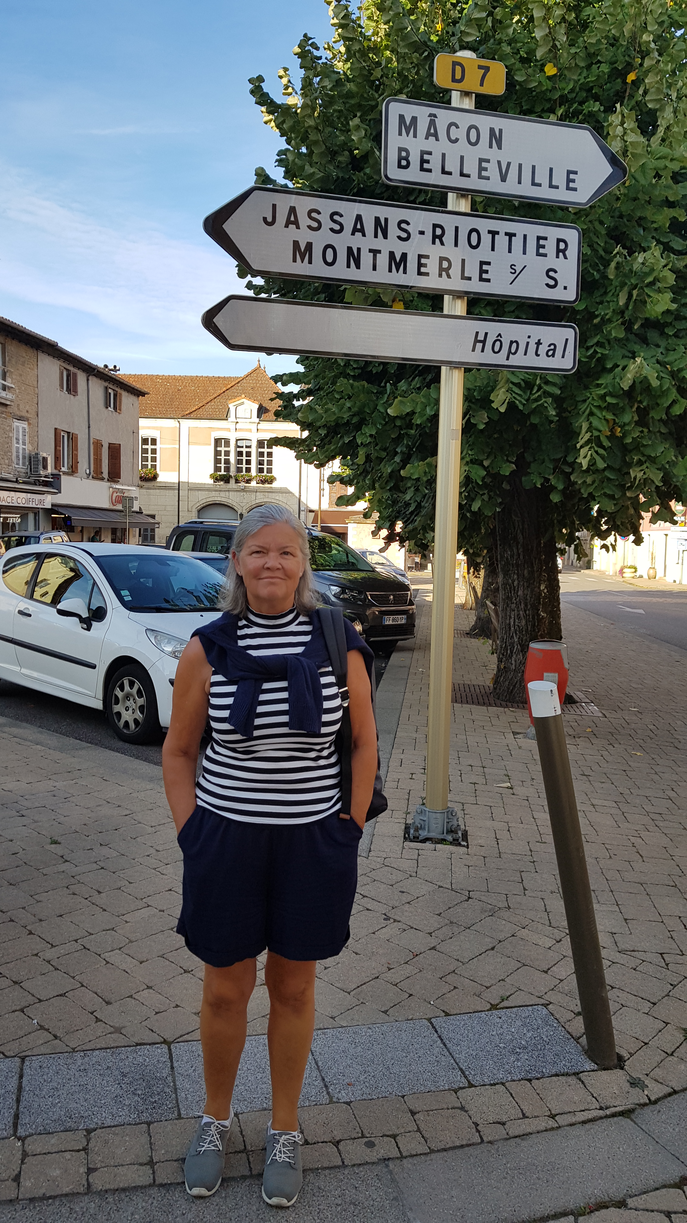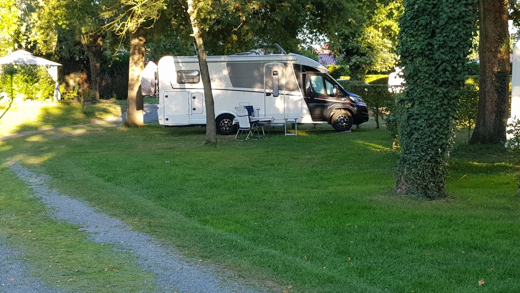 Åker till Camping La Chalaronne i en liten by som heter Saint Didier. Får en fin plats, promenerar till byn.