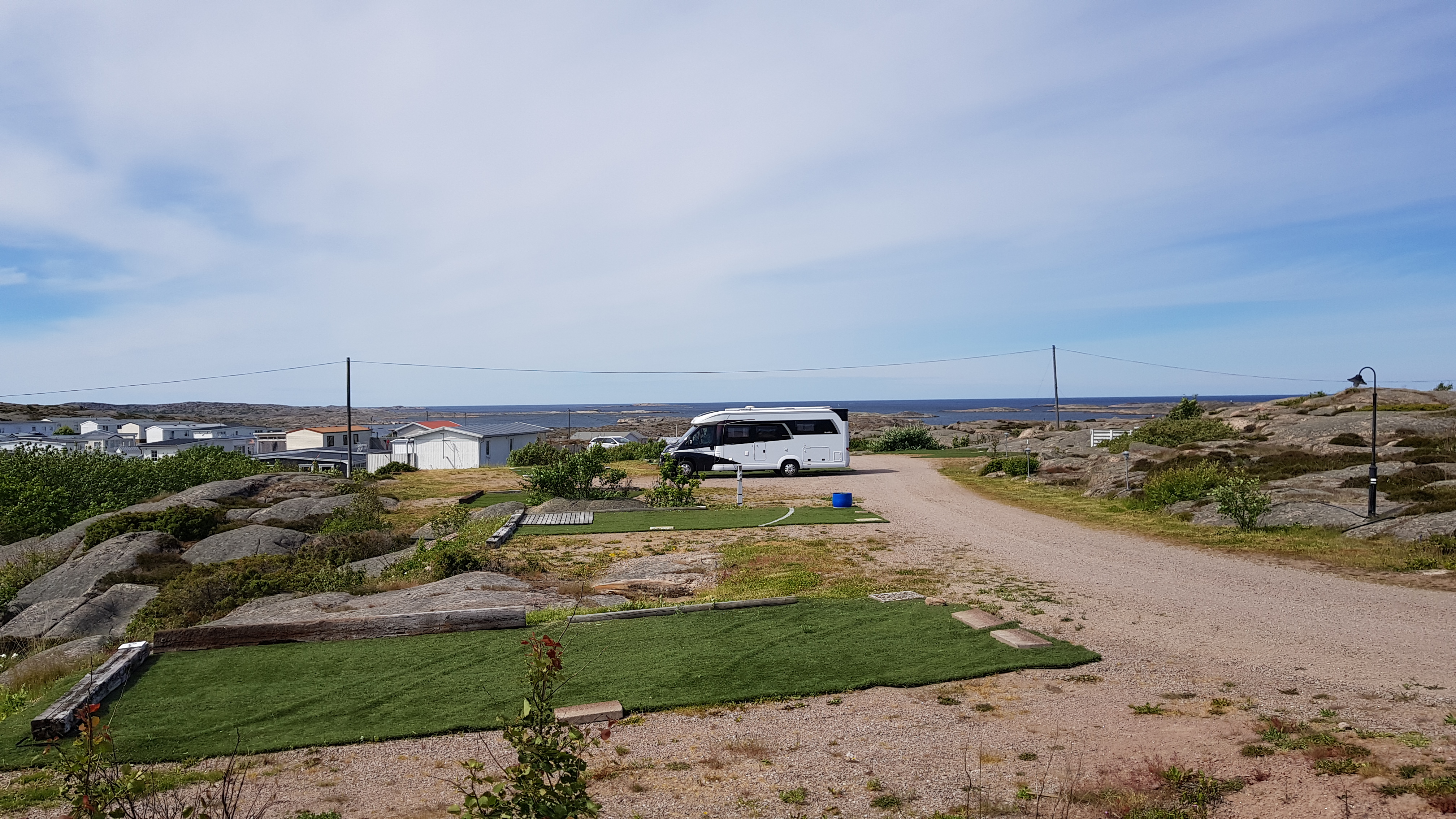 Vi flyttar oss till Väjern och får en fantastisk plats högst upp på Sotenäs Camping. Här bjuds på fantastiska ställplatser med utsikt över hela Skagerack.