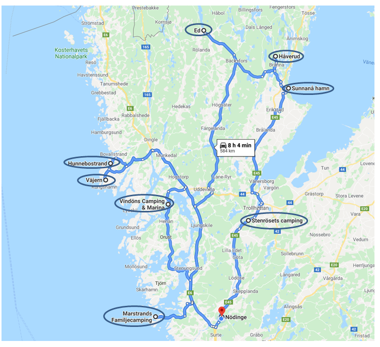 I dessa Coronatider fortsätter vi med att göra kortare turer. Vi håller oss inom 2 timmar från hemmet. Bilder visar lite turer vi gjort under juni och juli. Som synes blir det inte sammantaget så många mil. Men vi har i stort sett haft tur med våra resor vad gäller väder. Det man kan trycka på är att Dalsland bjuder på ett Sverige i miniatyr