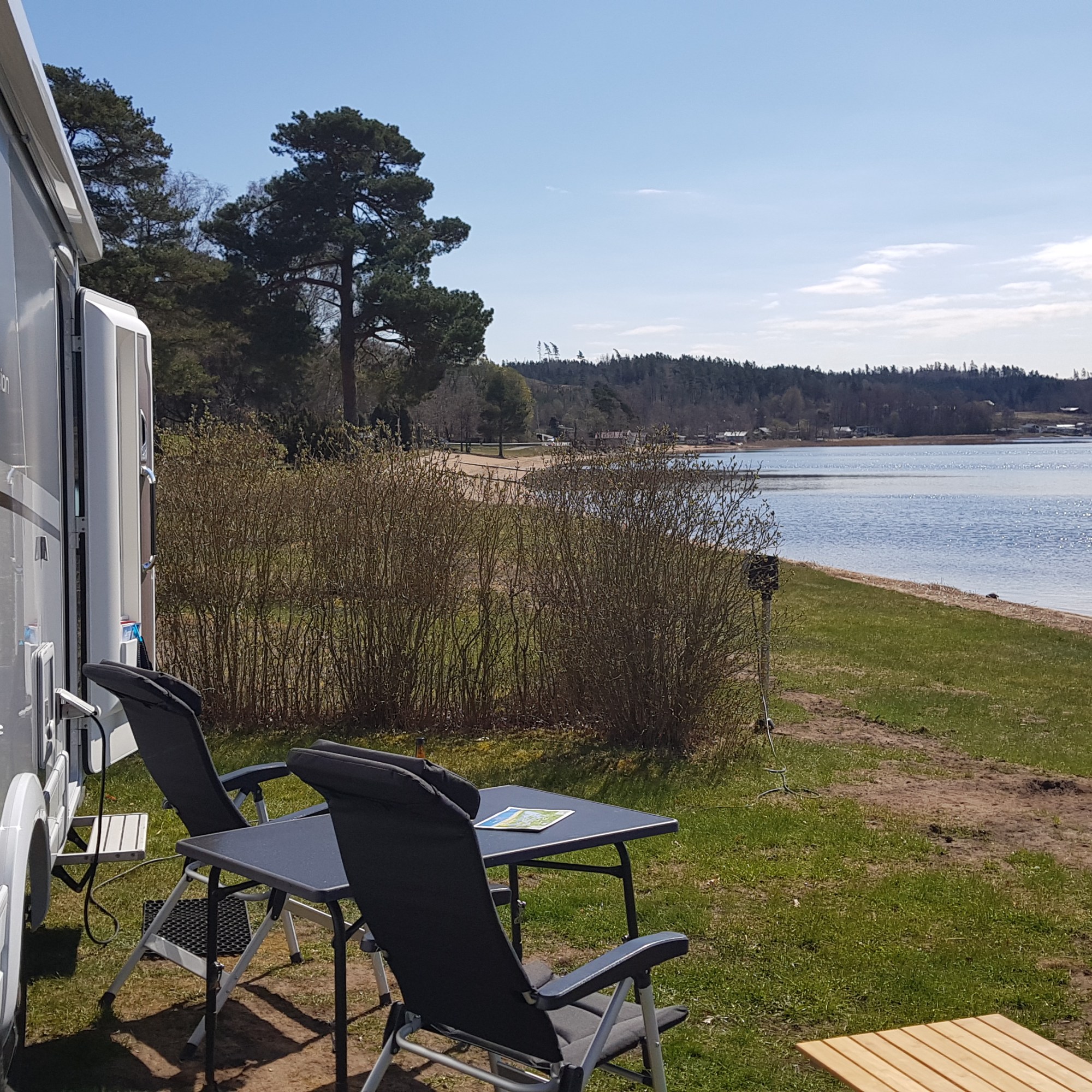 Helgen den 28-30 maj var vi på Hanatorps camping tillsammans med Marianne och Anders. Återigen fina platser alldeles vid sjökanten och dessutom i riktig sommarvärme. På fredagen var det smörrebröd och Gammeldansk, promenad och överlämning av whiskytunna. Vi provade Anders whisky och vi satt ute till 22.30, den första riktigt goa vårkvällen.