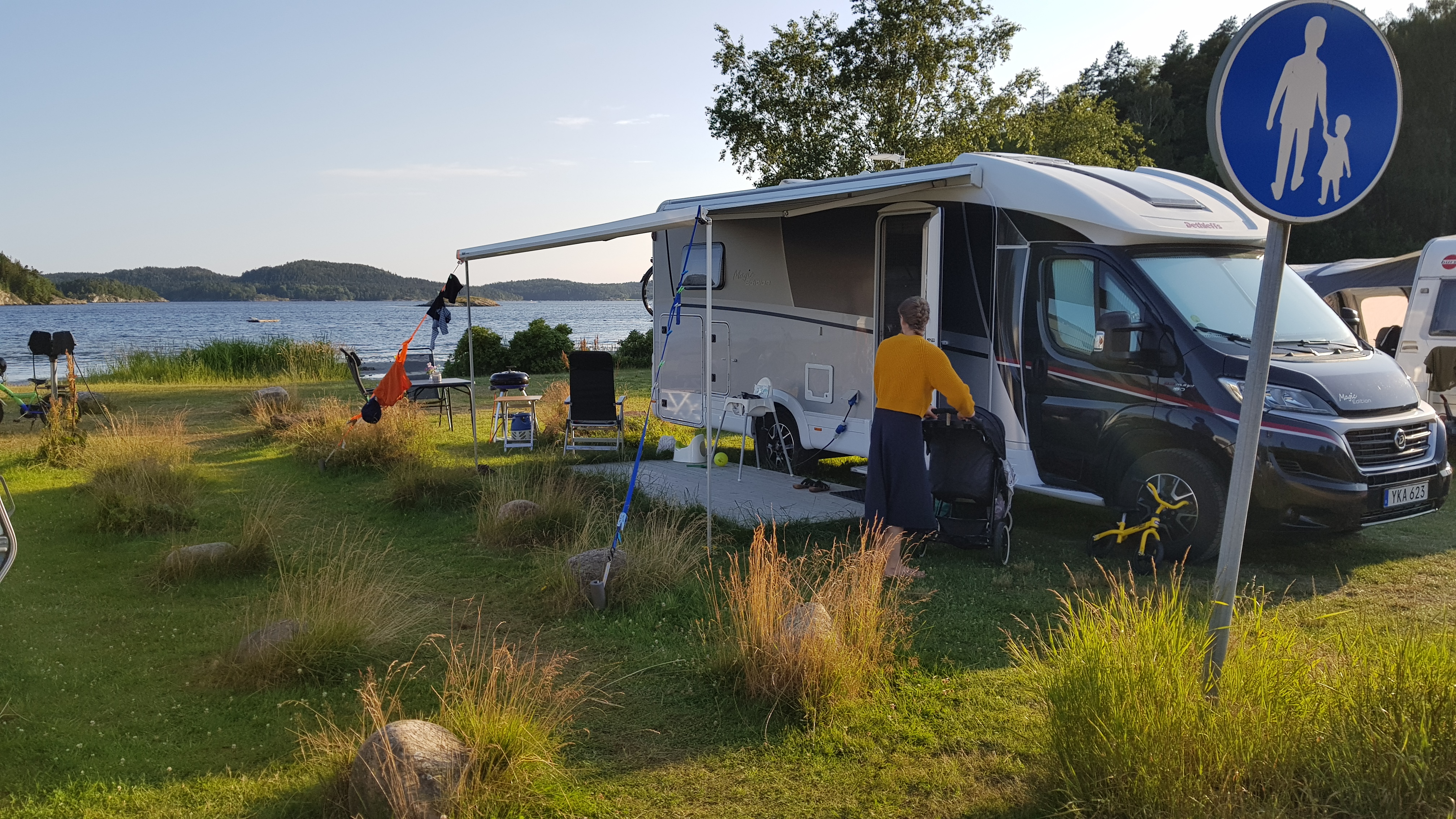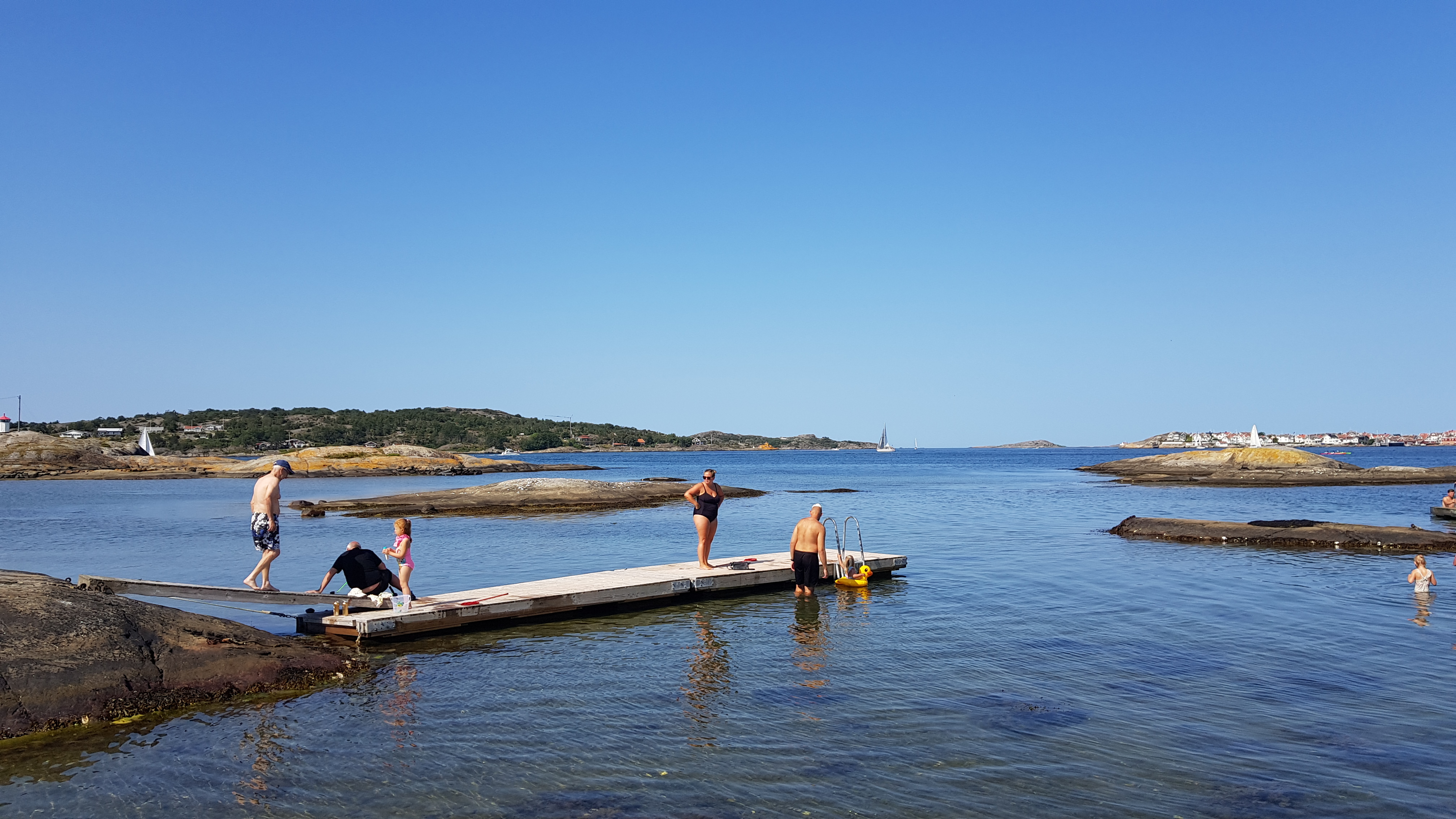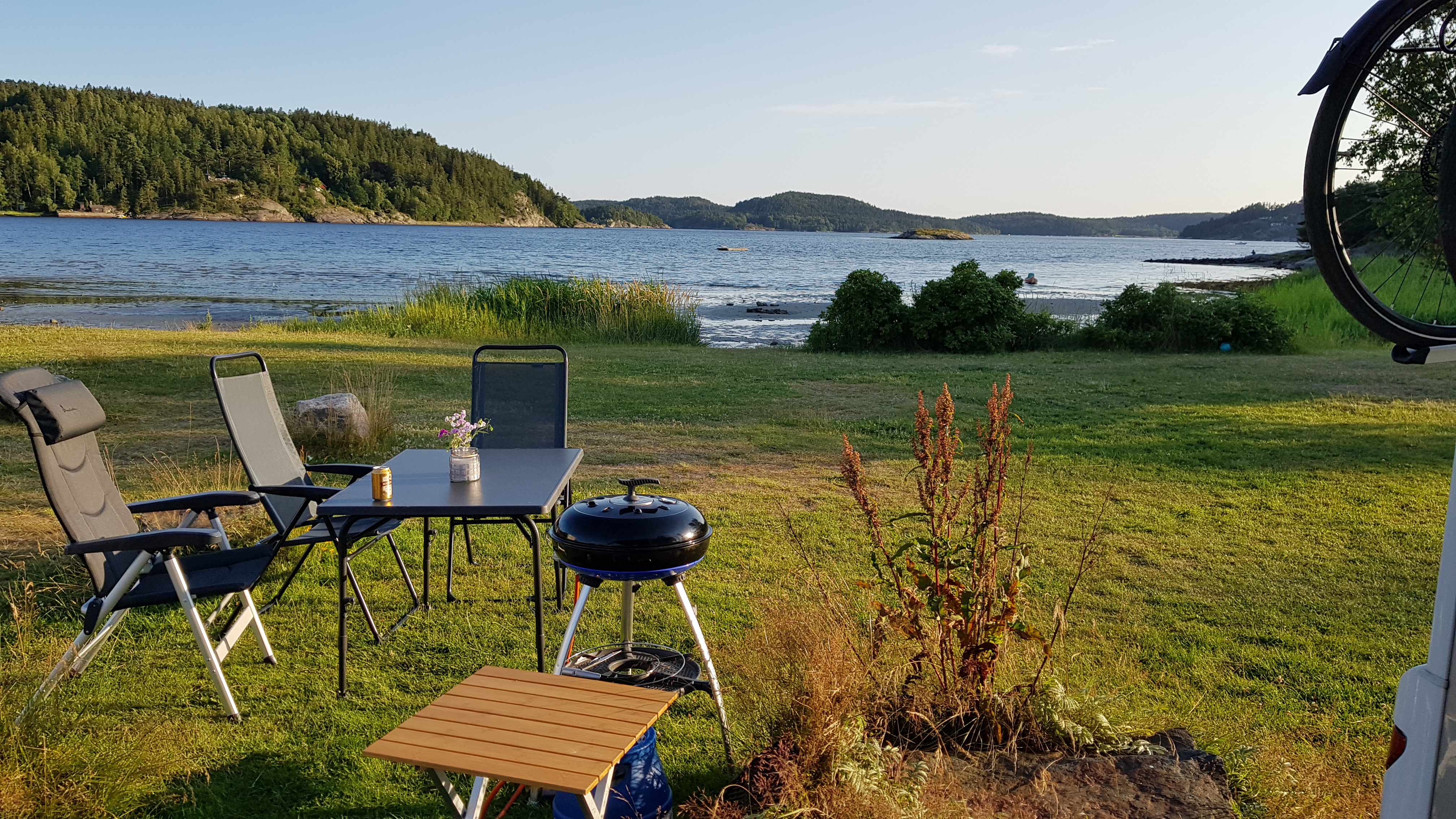 Åker sedan till Björkö och står på den södra platsen, vid badet. En av dagarna cyklar vi till Rörö – färja till Öckerö sen från Burö till Rörö. Härligt sommarväder, badar och njuter. Fantastiskt god lunch på ”Rörö Fiskeboa & Krog”.