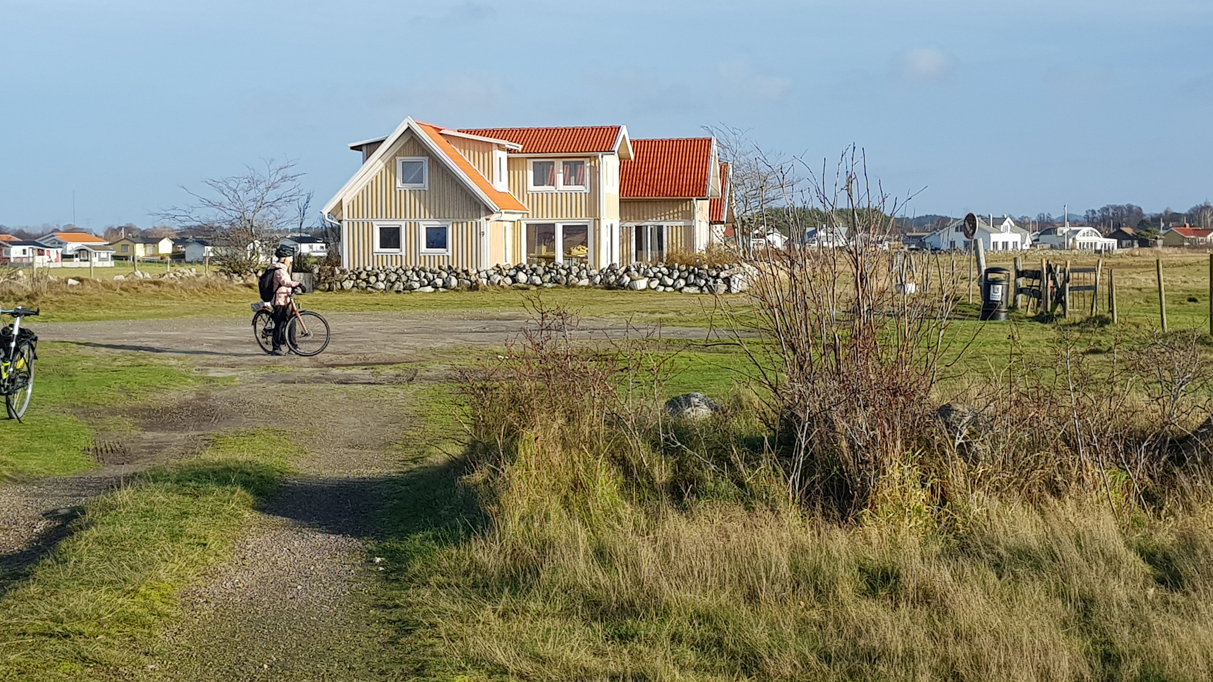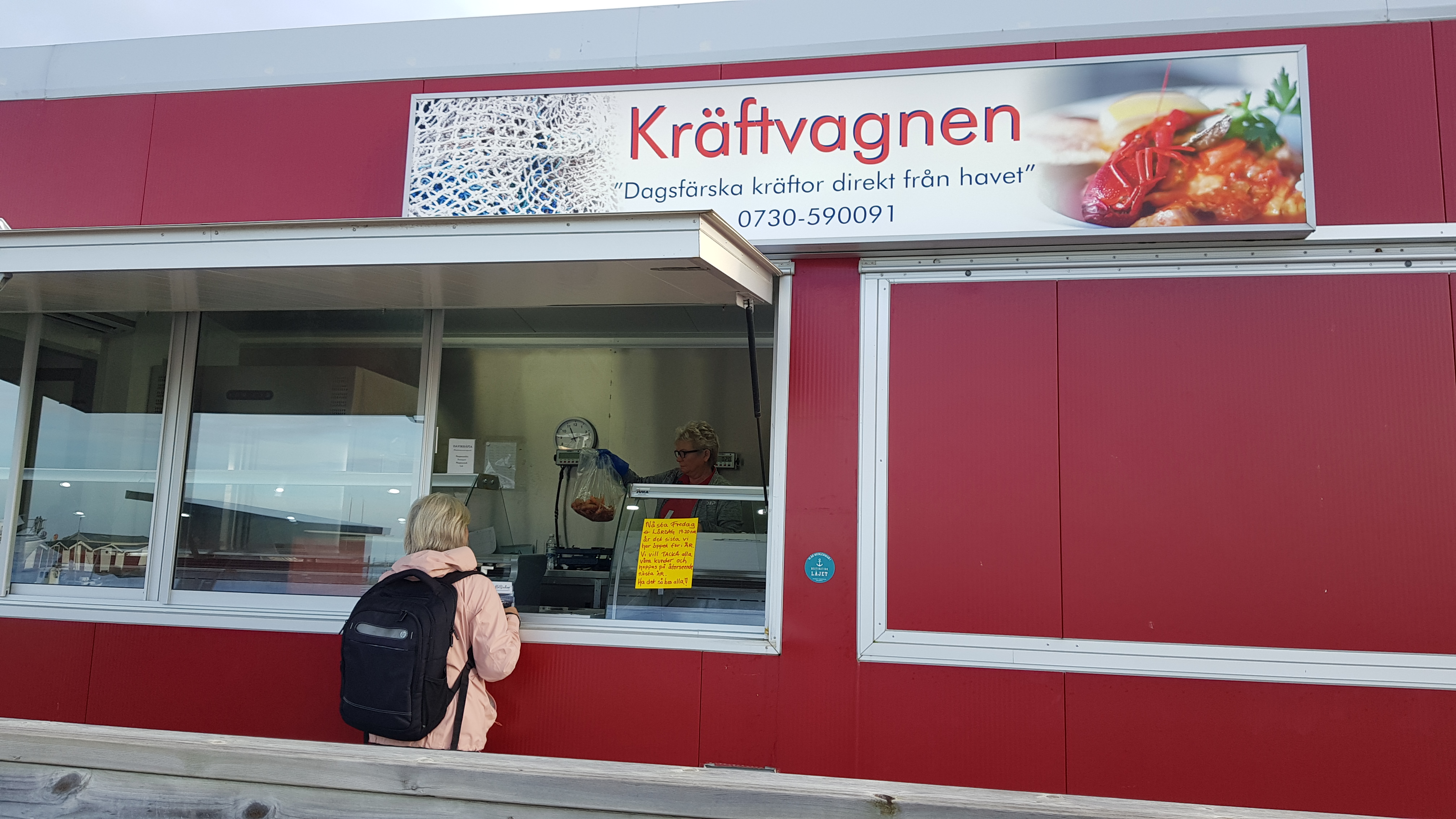 Några dagar med blandat väder – molnigt, duggregn, sol, regn och blåsigt. En av dagarna har vi fantastiskt väder, lite sol och helt vindstilla. Vi cyklar till Träslövsläge och köper kräftor.