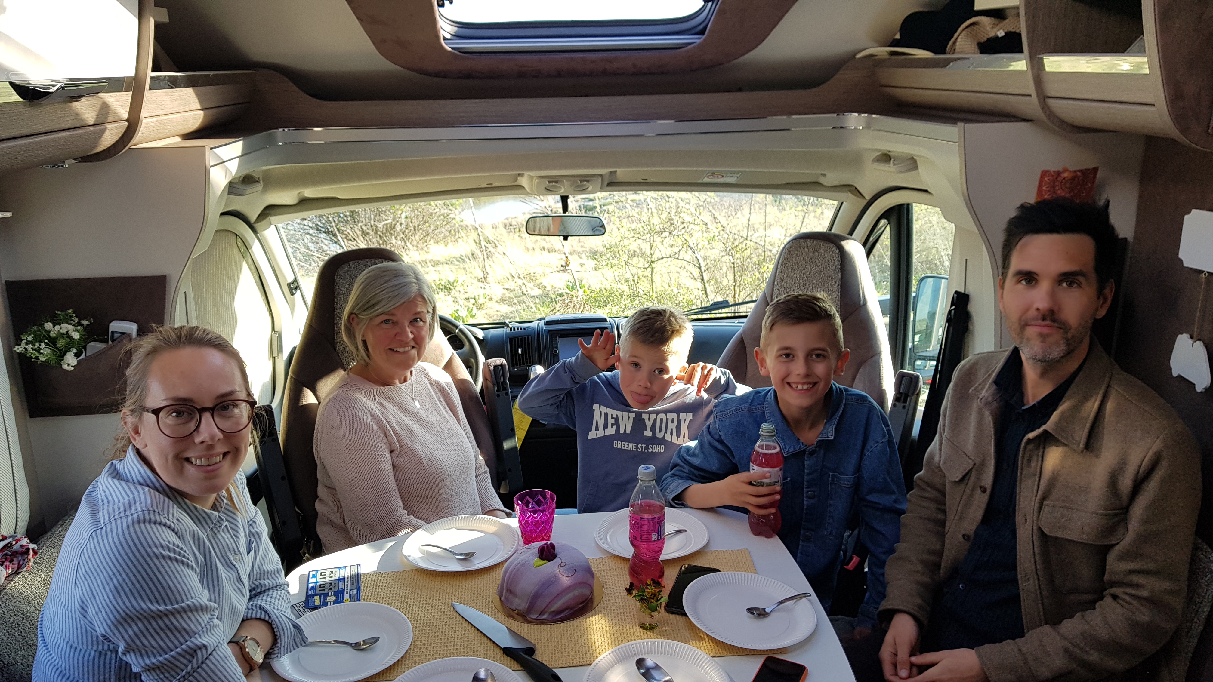 Nu blir det en blåsig tur med våra vänner till Hafstens Resort. Vi parkerar så att vi får stoppat den skarpa vinden. Som vanligt är det mysigt när vi träffar Krantzarna. God mat och fina promenader. Campingens ägare har ytterligare utvecklat promenadområden. Nu kan vi i slutet vandra efter havet med Uddevalla bron i fonden.
