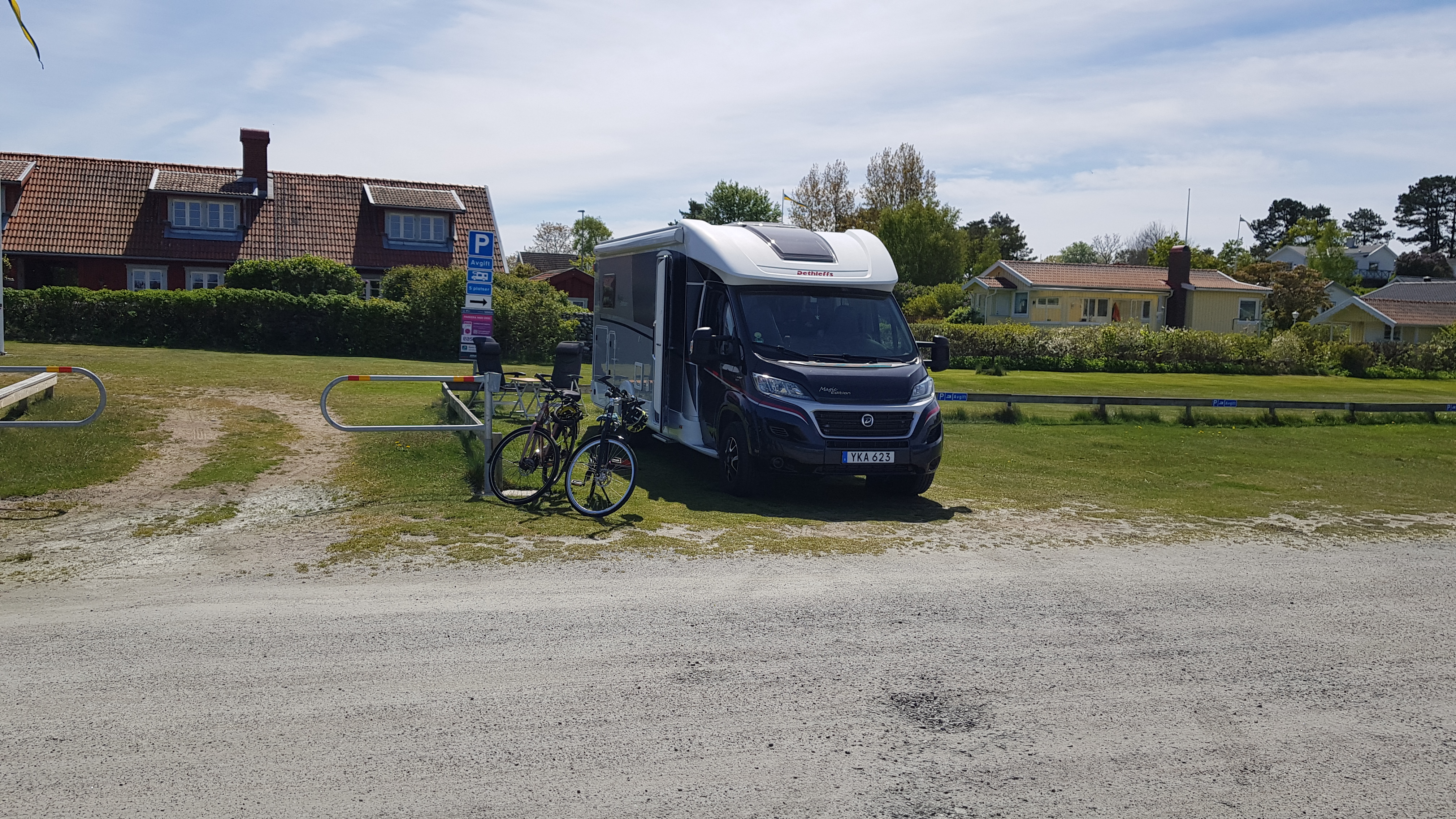 Vi testar en ny plats och då blir det Frillesås och deras fina bad vid Torstensviken. Här har vi fått tips om att det finns 5st platser nära havet. Vi är ensamma och kan njuta av denna fina plats. Fin gräsplan att stå på och havet precis framför. Toalett som nästan såg nya ut fanns i närheten av platsen. Vi vandrade i detta vackra sommarstuge/villaområde. Hit kommer vi gärna tillbaka. På kvällen fick vi trevligt besök av två gamla fina kollegor från Hogia. Det blev en mysig kväll med goda samtal och härlig samvaro