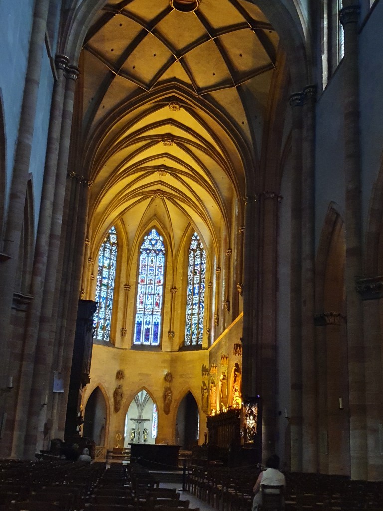 Från höga alper men ändå ett böljande landskap med mycket uppför och nedför att köra. Väldigt vackert och första stoppet i Alsace blir i Colmar. Återigen en camping, Camping De L’ill. Fin plats vid en å men med en stor väg utanför som stör lite
