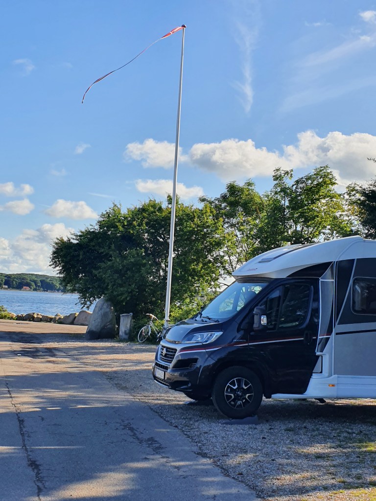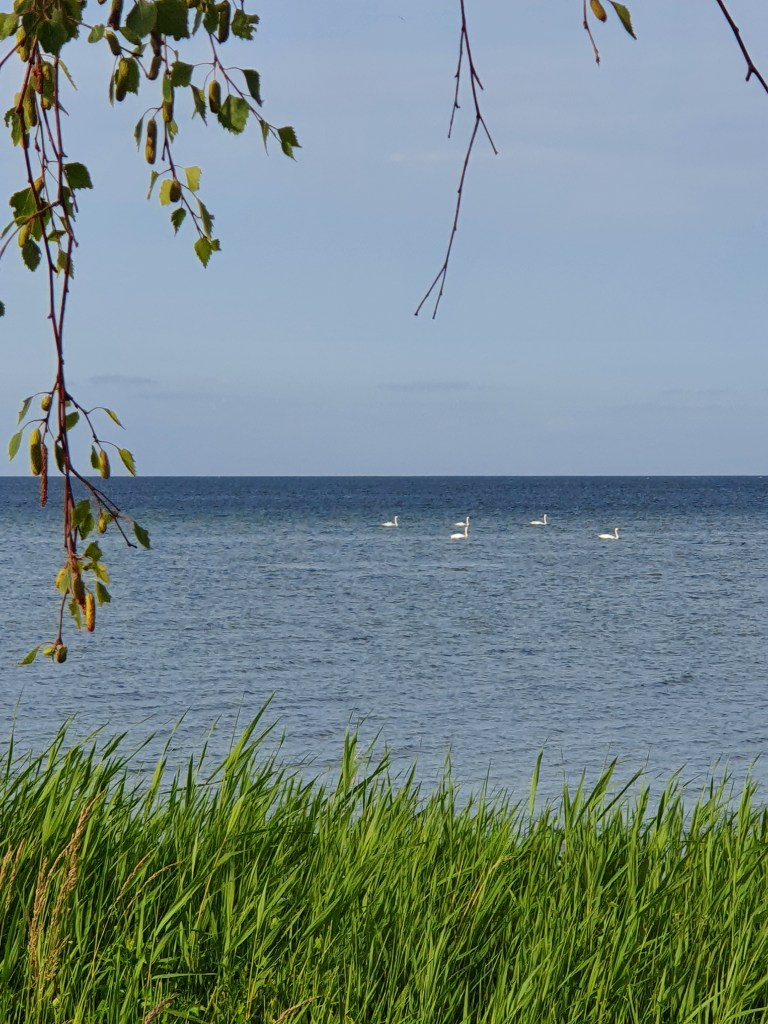I Puttgarten handlar vi på pråmen och kör efter båtturen till en ställplats i Bandholm två mil norr om Rödby. Fantastiskt fint med havet alldeles framför oss med många svanar som simmar förbi. Tar en liten cykeltur men här finns inte mycket att se.